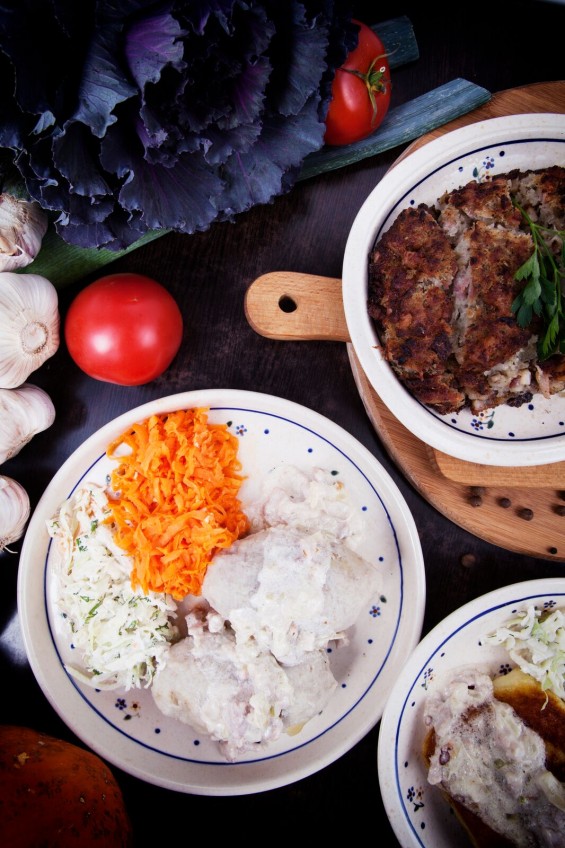 | Bitki w śmietanie - posypane serem litewskim 'Dziugas' - Kotlety z mięsa wieprzowego, ser litewski 'Dziugas' śmietana, ziemniaki pieczone, surówka (200g.) | 41 zł |